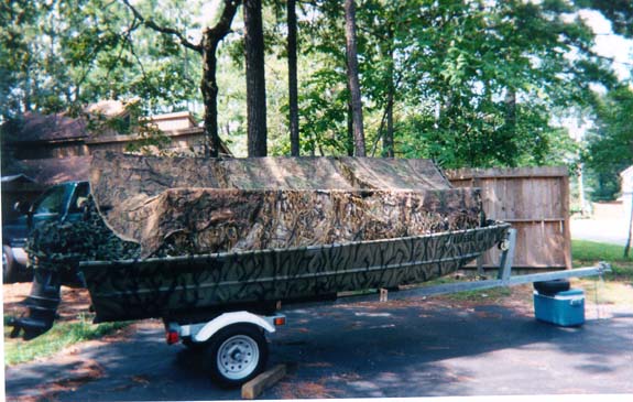 If I have to chase a cripple, I pull the camo into the boat like this and uncover the motor. This keeps the camo from dragging in the water & getting in the prop.