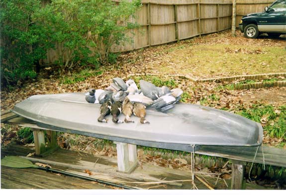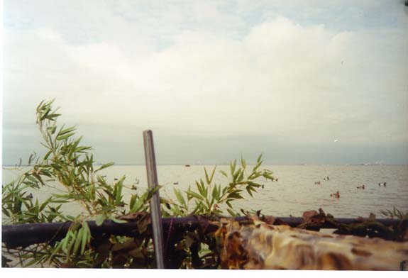 This is a diver hunt on Mobile Bay on the last day of the 98-99 season. If you look real closely, you can see the skyline of Mobile about 4 miles away on the right side of the picture.