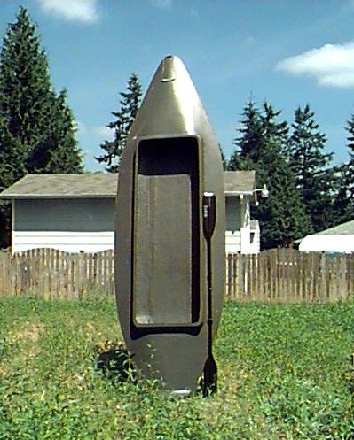 One picture of the Mallard (and by the way my wife has named the boat...the "Aprils Fool" !) in the background you can see my 4-Rivers layout /marsh boat. It is 13 feet 6 inches and is 50 inches wide and 15 inches deep. Only weighs 100 lbs. You could run it with an electric trolling motor or up to a 2 hp. gas motor. I choose to use a kayak paddle, and you best take everything you need "in your pockets as space is at a premium.