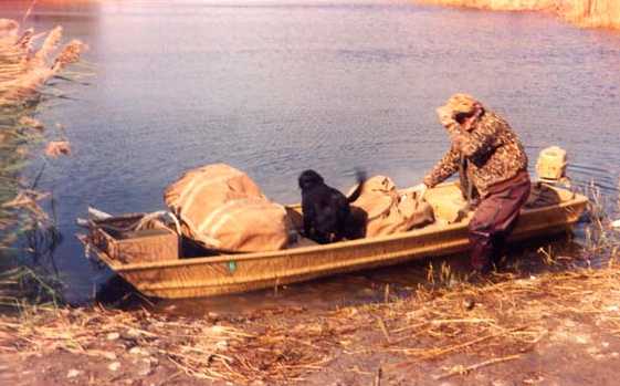 lab, Duke, two parachute bags holding 42 decoys and the dog box up