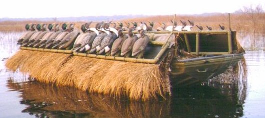 30 decoys on the blind. This makes room inside the boat for more decoys