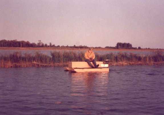 This is me and Laroo in the 16 ft tender boat towing the layout.