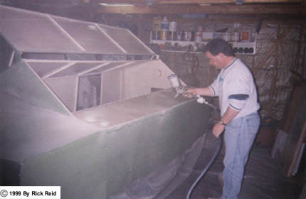 backside of the sheeting with rubberized undercoating before fastening the sheeting.