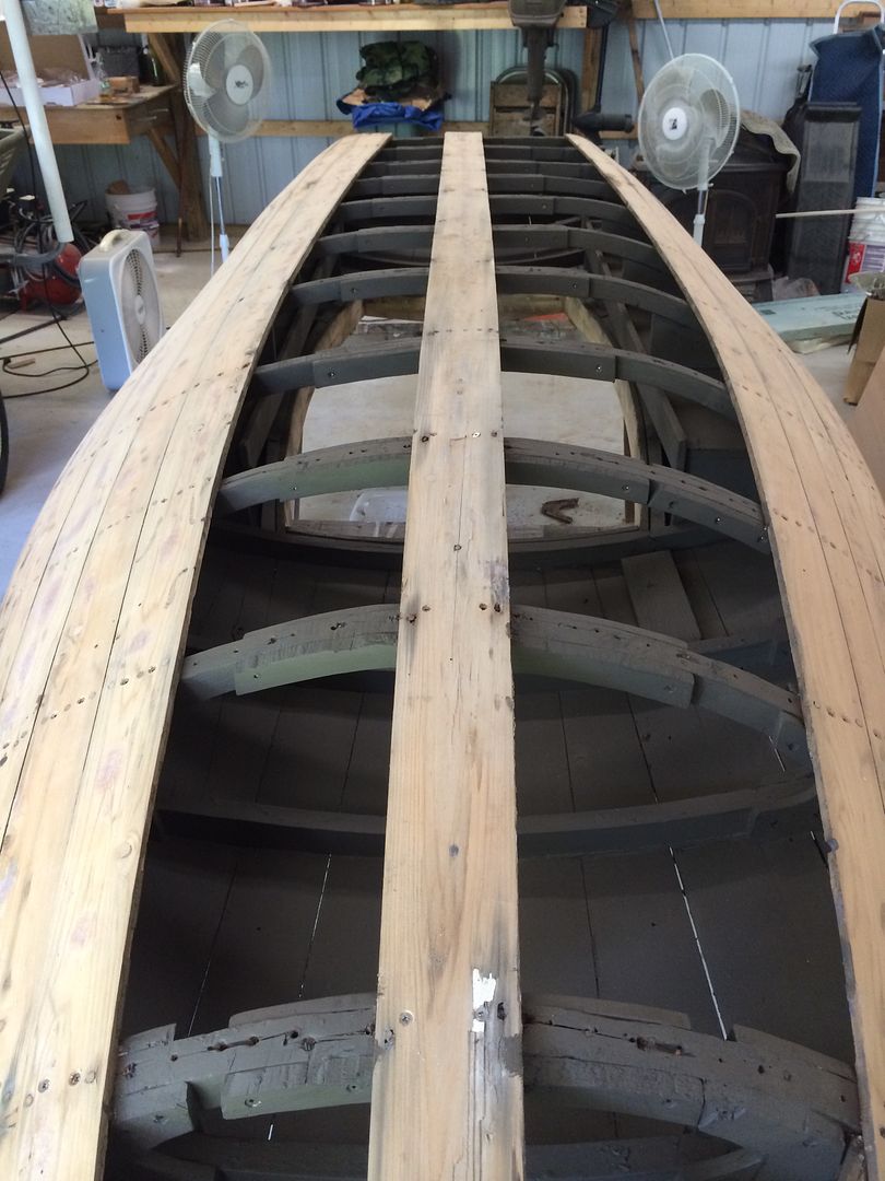 Well I am officially the slowest boat builder ever but I finally made some progress on my Sneakbox. I decided not to keep posting little updates as to not keep anyone waiting lol. But here is my old heinrichs box that I am restoring. I had it all stripped down and replaced the boards on the top of the boat. Then i flipped it over and ripped off the bad planks.