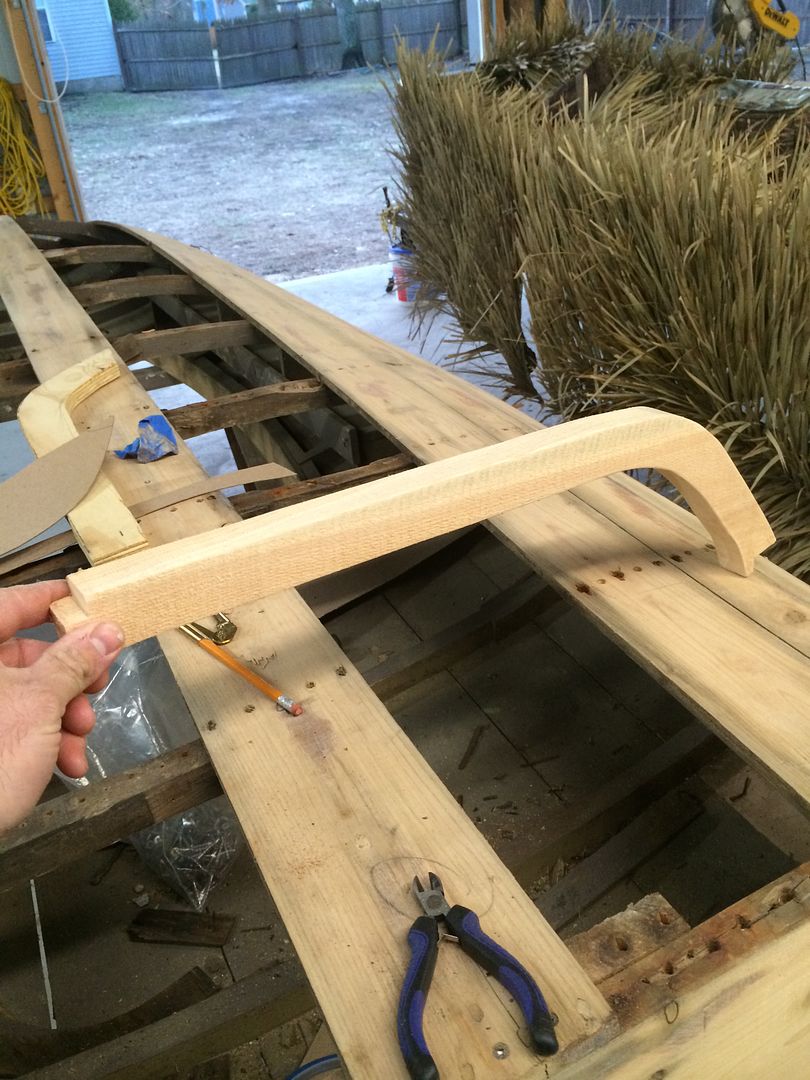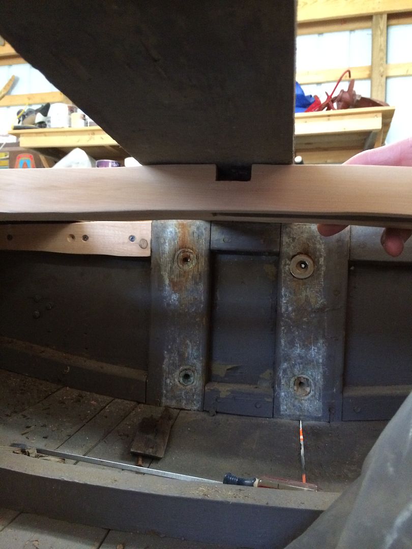 I had to replace 3 ribs which was an interesting task. I tried numerous methods to replicate the rib and finally landed on one that worked. I cut some cardboard and put it in the boat, traced, scribed, and cut and fit some more until I got something that worked. I then cut it out on some scrap ply to fit before using my 1 inch cedar.