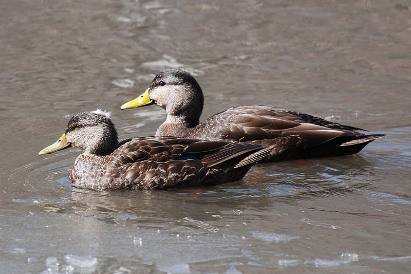 American Black ducks are similar to mallards in size, and resemble the female mallard in coloration, although the black duck's plumage is darker. The male and female black duck are generally similar in appearance, but the male's
