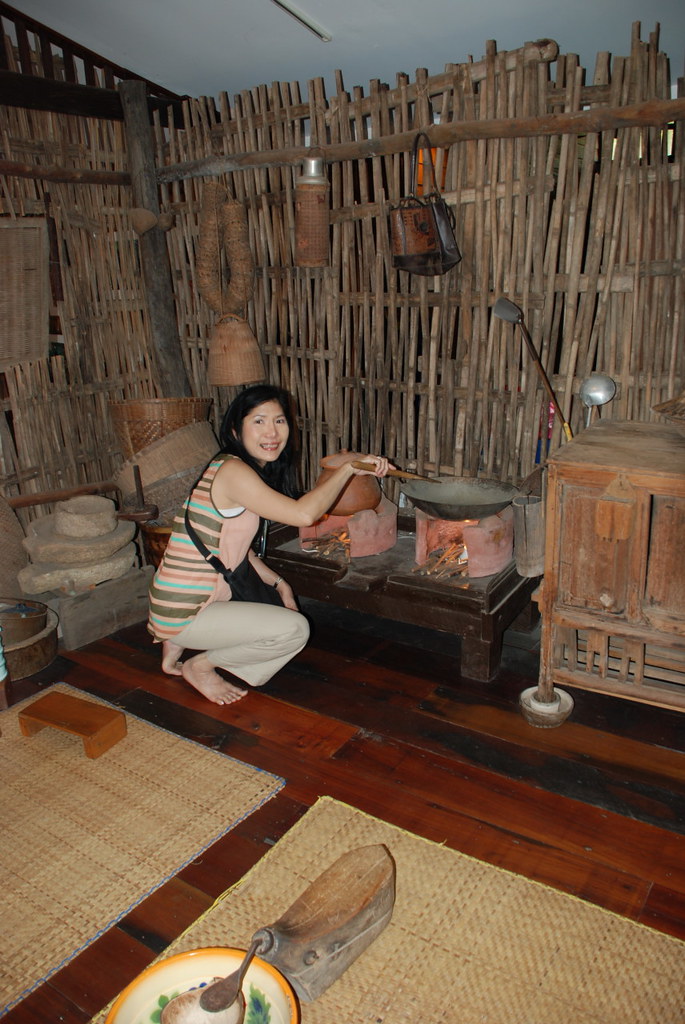 That heavy stone on the left side is a grinder to make rice flour.